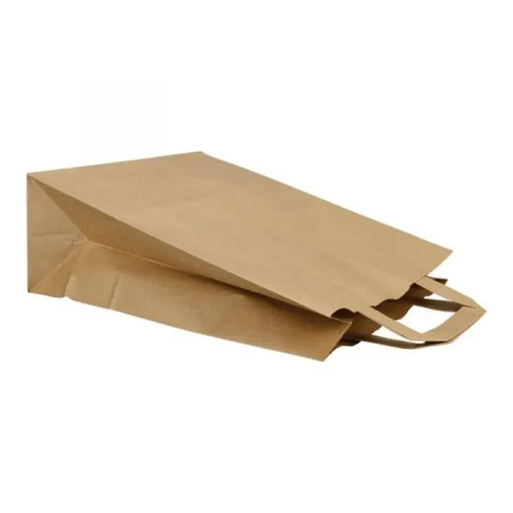 فلیٹ پیپر ہینڈلز کے ساتھ کرافٹ پیپر بیگ کیٹرنگ انڈسٹری میں ، سپر مارکیٹ میں اور تحائف کے طور پر استعمال کیا جاسکتا ہے۔ وہ مضبوط اور پائیدار مواد سے بنے ہیں ، کئی بار دوبارہ استعمال کیے جاسکتے ہیں ، کمپوسٹ ایبل اور بائیوڈیگریڈیبل ہیں۔